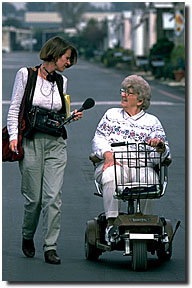 McClintic, 90, takes time out from online chat to stroll with reporter
